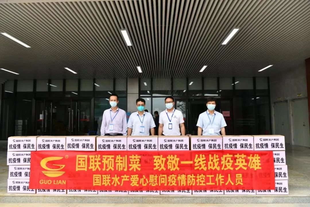 5月12日,國聯水產集團慰問組再次出發,前往坡頭區南三鎮、坡頭區龍頭鎮、南調街(南油三區)、坡頭區官渡鎮及本次疫情重災區官渡工業園。在國聯水產高層領導帶隊下,將國聯水產預制菜禮包捐贈給堅守在一線的工作人員和醫護人員。國聯水產捐贈的預制菜包含10000份風味烤魚,12000份金湯酸菜魚,富含營養蛋白、加熱即食的預制菜,讓一線工作人員能在繁重的抗疫工作期間,保障用餐美味、省心、開心。